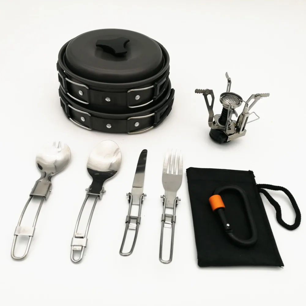 Discount Outdoor Camping Hiking Backpacking Picnic Cookware Cooking Tool Set Pot Pan Outdoor Stove Travel Co
